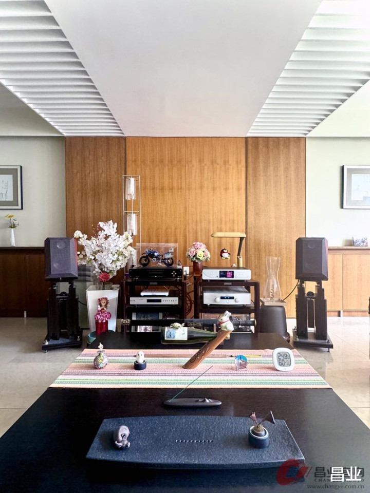 文先生家中收拾得井井有条,用一尘不染来形容也不为过,装修不是最奢华的,却是我家访过的发烧友家中最整洁的一间。音响器材保养得如同新品,难以想象这套设备已购入近十年仍保持如此成色——谁能接手到文先生的器材真是福气,它们确实被当作宝贝般呵护有加。连器材摆放的细微处都做得比商家更到位,整体观感极为舒适,可见文先生是位注重生活品位的雅士。室内点缀的手办、花草植物既美化环境又净化空气,在冬季里显得格外清新,充满生机。